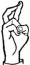 На ћирилици написано МИНА ДИНУЛОВИЋ састоји се из 13 слова [?]. Исписано ћириличном једноручном азбуком за глувонеме: